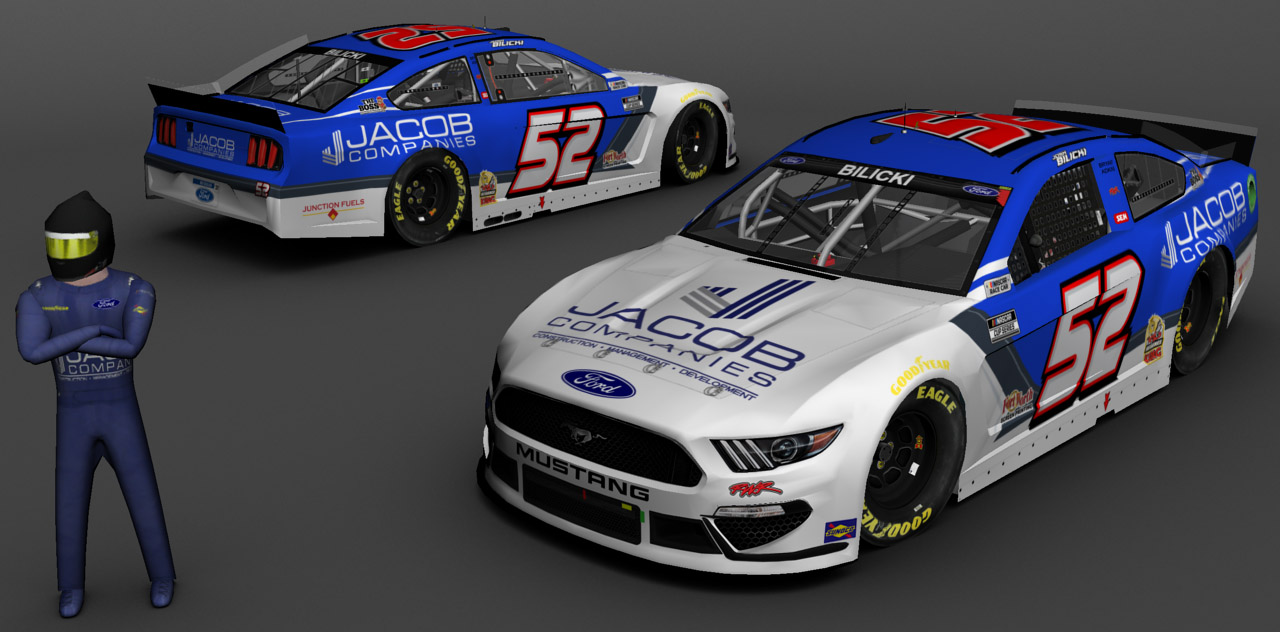 2021 #52 Josh Bilicki Mustang from Talladega 1. MENCS 2019 mod & template - Splash n' Go with Lefty template update...... #'s - me...... B-pillar decals - Rick's 2021 B-Pillars/me ...... Sponsor logos from various internet sites/me...... Pit crew - SteveZ ( modified )...... NRatings for driver rating...... Render - The Mod Squad......